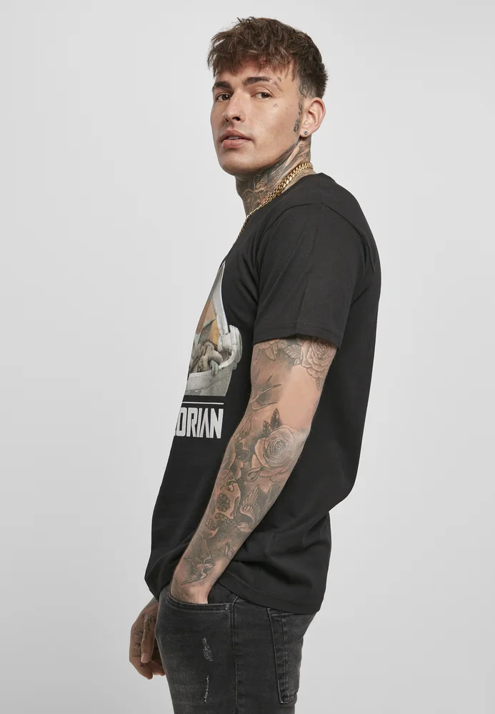 Star Wars Fan? Dann solltest du hier dringend zuschlagen! Dieses coole Merchandise Shirt macht mit dem Print des niedlichen kleinen Baby Yoda samt The Mandalorian Schriftzug auf der Front nicht nur richtig was her, sondern überzeugt auch mit einem klassischen Schnitt und einem super Tragekomfort.
