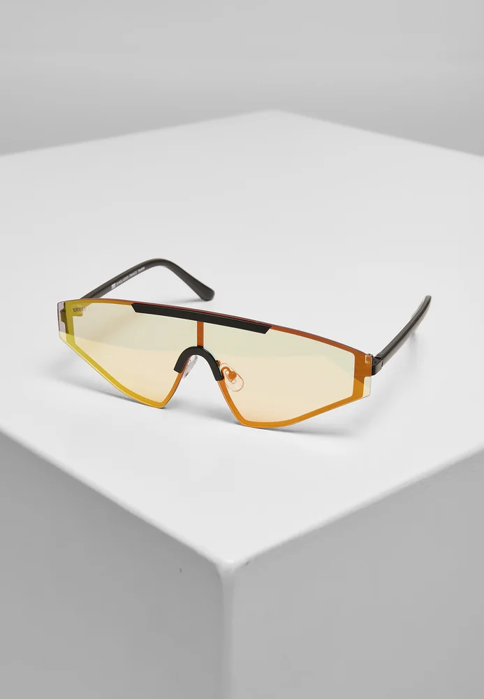 Die sportliche Urban Classics Sonnenbrille in Shield-Form kommt im Zweierset in zwei Farbvarianten. Die Gläser sind dreieckig, der Steg ist verglast und die Bügel sind fein und gerade. Durch einen Einsatz über dem Nasensteg wird der halbrunde Brauenbügel der Sonnenbrille betont. Ihre flexiblen Nasenpads garantieren eine optimale Passform, Schutz für die Augen bietet UV 400. Die großflächige Sonnenbrille besteht aus Polykarbonat, rostfreiem Stahl und Kupfer.