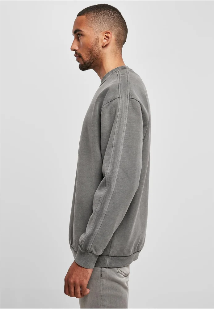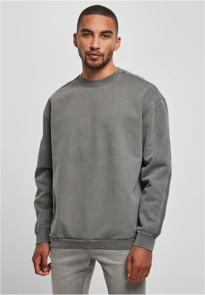 Der Pullover hat ein lässigen Oversized Fit mit großzügig überschnittenen Schultern. Der Rundhalsausschnitt sowie der Saum und Ärmelabschluss haben ein breites geripptes Bündchen. Ein besonderes Detail ist der Halbmondbeleg im Nacken.
