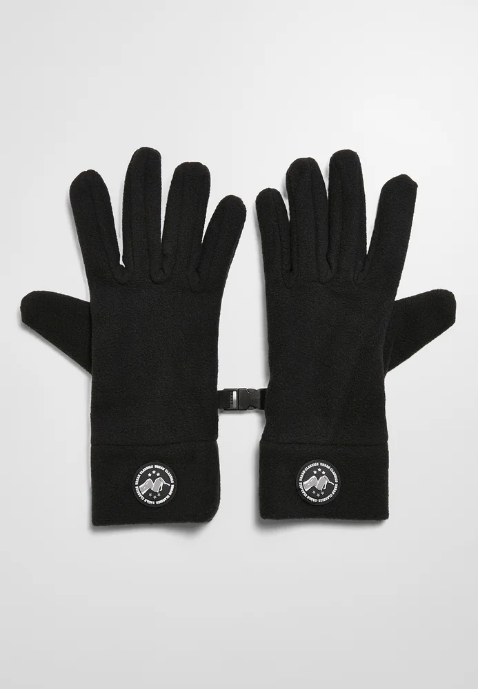 Die weichen Fleece Handschuhe aus Polyester halten die Finger an kalten Tagen schön warm. Für Tragekomfort sorgt das breite Bündchen mit einem Urban Classics Performance Rubber Patch. Die Fingerhandschuhe haben einen kleinen Klippverschluss, um sie zu verbinden. So geht kein Handschuh mehr verloren.