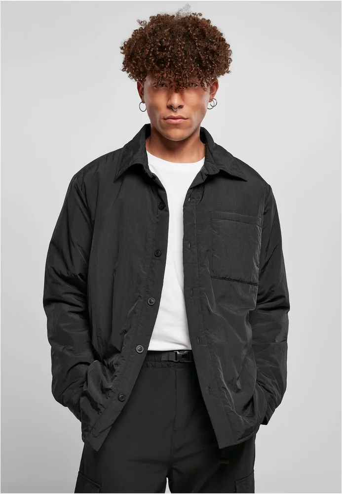 Die leicht wattierte Herren Jacke überzeugt mit maskulinem Style, der an das Design eines Hemds angelehnt ist. Sie besitzt einen Umlegekragen, eine Knopfleiste und eine Brusttasche. Stimmig ergänzt wird der Look von den Ärmelmanschetten und dem angerundeten Saum auf der Vorder- und der Rückseite. Die herbe Männer Jacke besteht aus reißfestem, robustem Nylon und ist mit gestepptem Futter ausgelegt. Sie hat eine regular Passform.