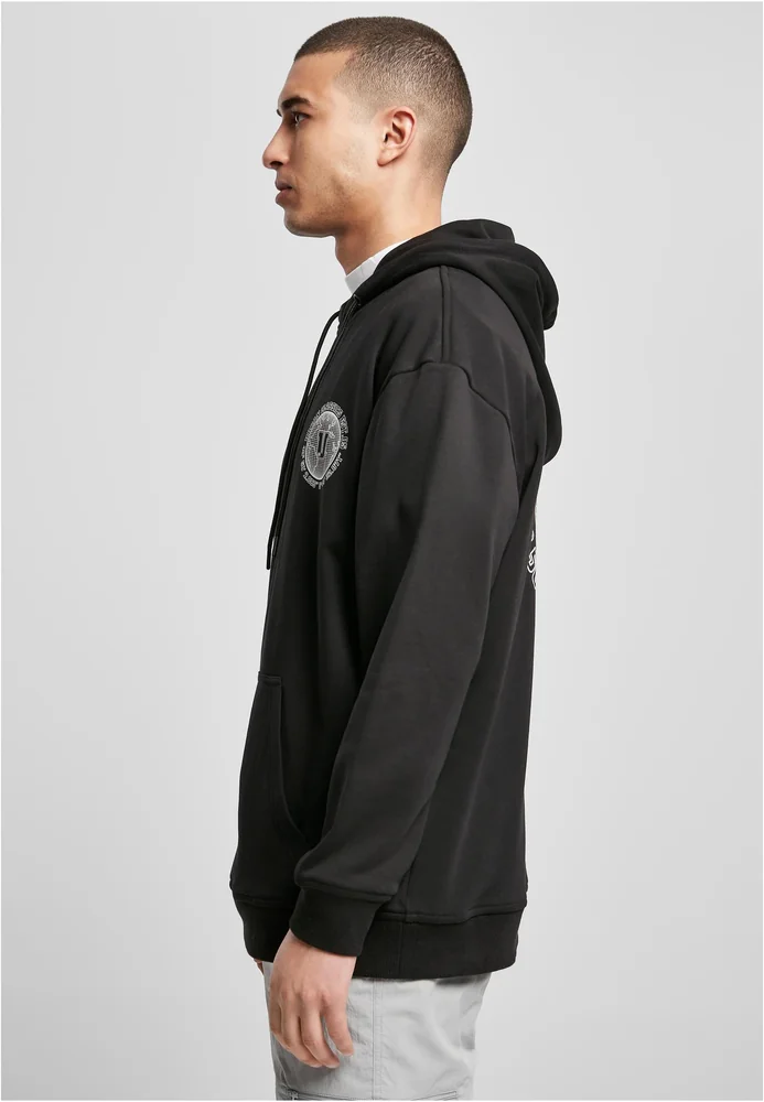 Der Urban Classics Oversized Hoodie eignet sich wunderbar für sportliche Looks und bietet neben klassischen Hoodie-Elementen wie Kapuze, Kängurutaschen und breiten Rippbündchen noch zwei Globetrotter Motive vorne und hinten. Zentral im Motiv steht das bekannte University U, das von einer Weltkugel umrahmt wird. Oberhalb verläuft der Urban Classics Schriftzug, inklusive dem Gründungsjahr. Unterhalb verlaufen die Koordinaten, an dem der Designgeber des sportlichen Kapuzenpullis zu finden ist.